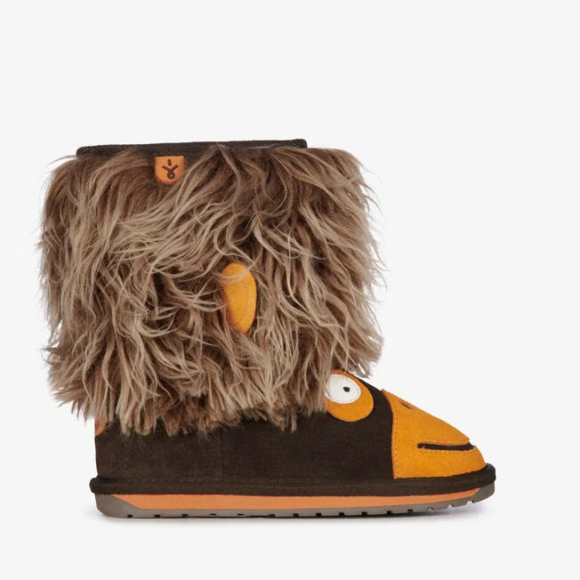 The EMU Australia Orangutan is the newest cheeky tree dwelling creature to join the Little Creatures family, made from premium quality suede, sporting shaggy faux fur and lined with 100% Australian Merino wool it features a flexible, non-slip outsole.